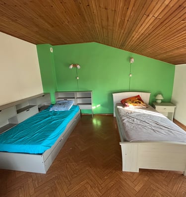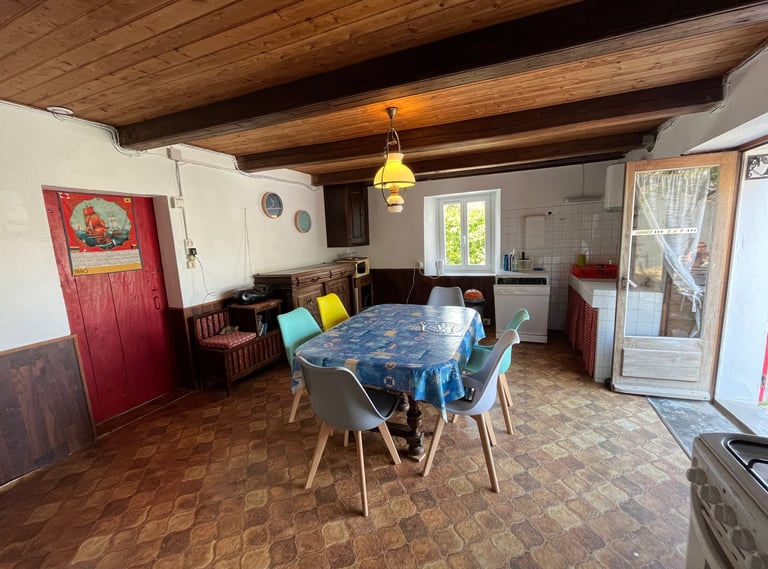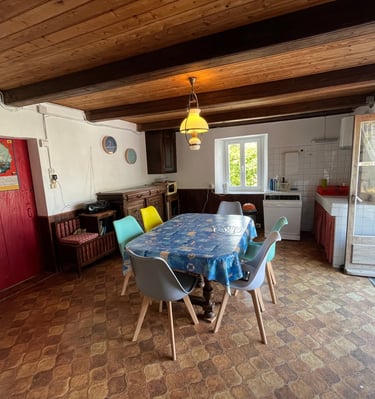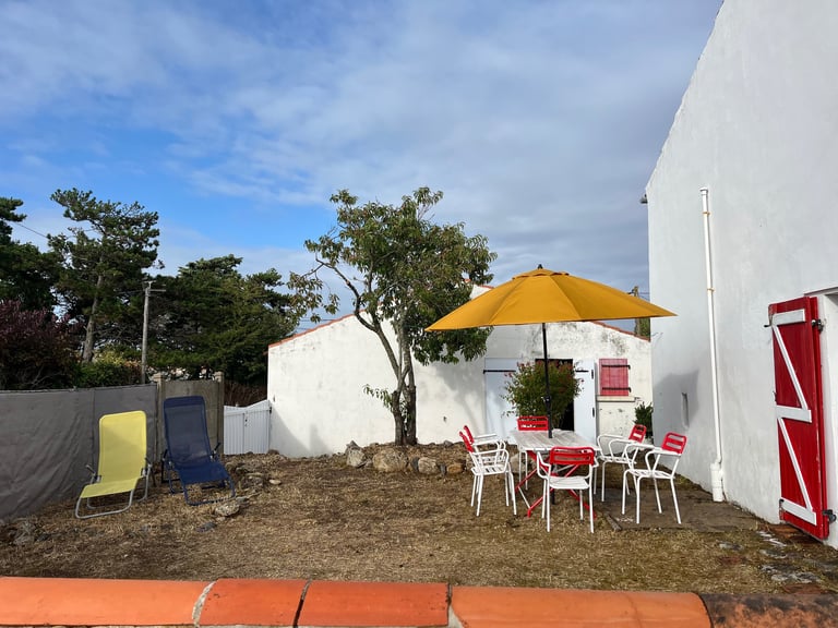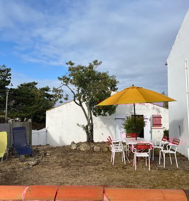 Une maison blanche au charme vendéen, unique avec ses volets rouges, pleine de souvenirs d'enfance chaleureux.